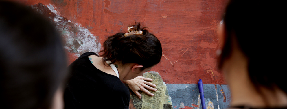 Paty Cabral: Látex, cal, pigmentos líquidos, pigmentos em pó, pigmentos naturais (chás, café, extrato de nogueira, terra, lodo), óleos, escadas, pincéis, rolos, baldes, jornal, muita água… A lista pode ser bem extensa. Tudo depende das necessidades de cada pintura a ser desenvolvida.